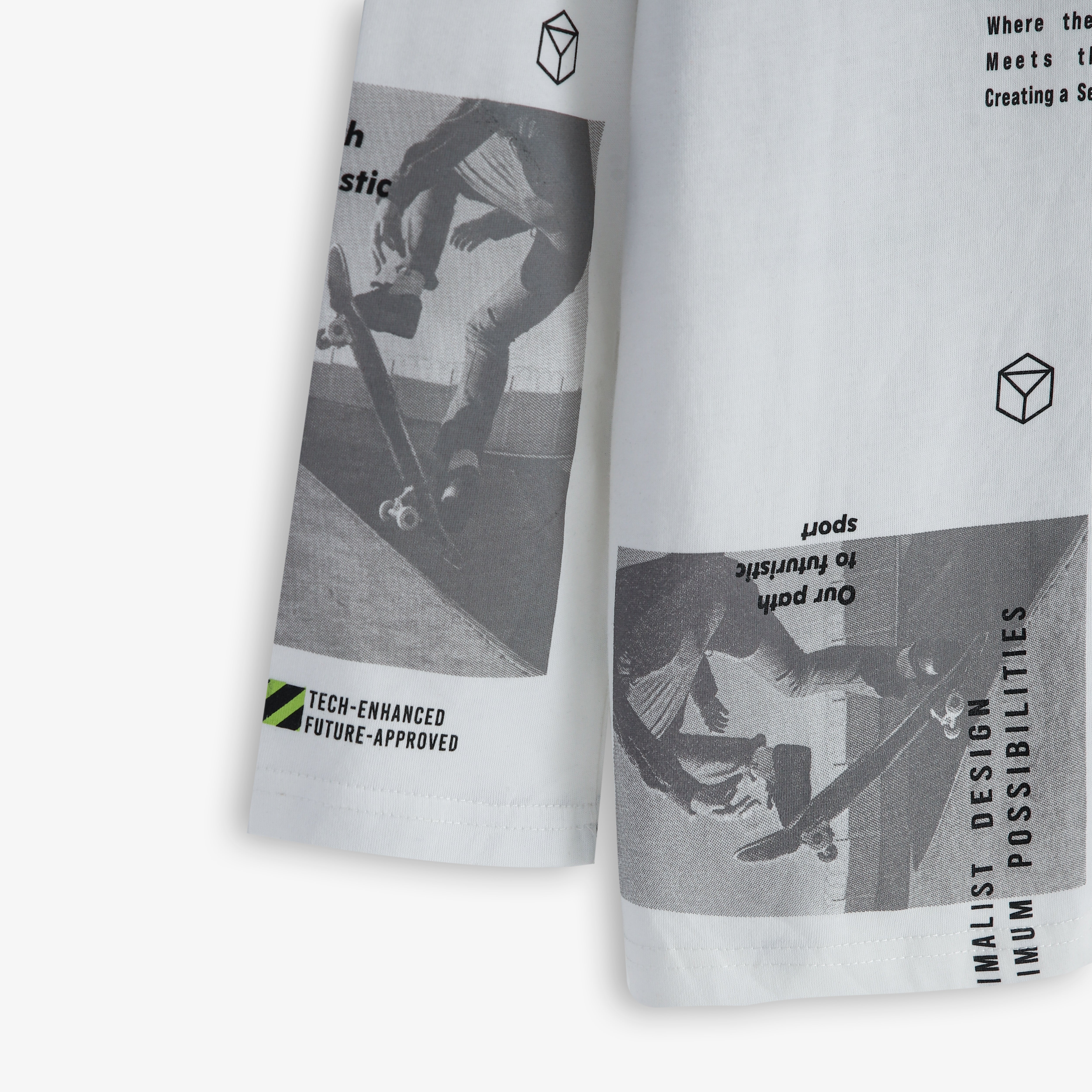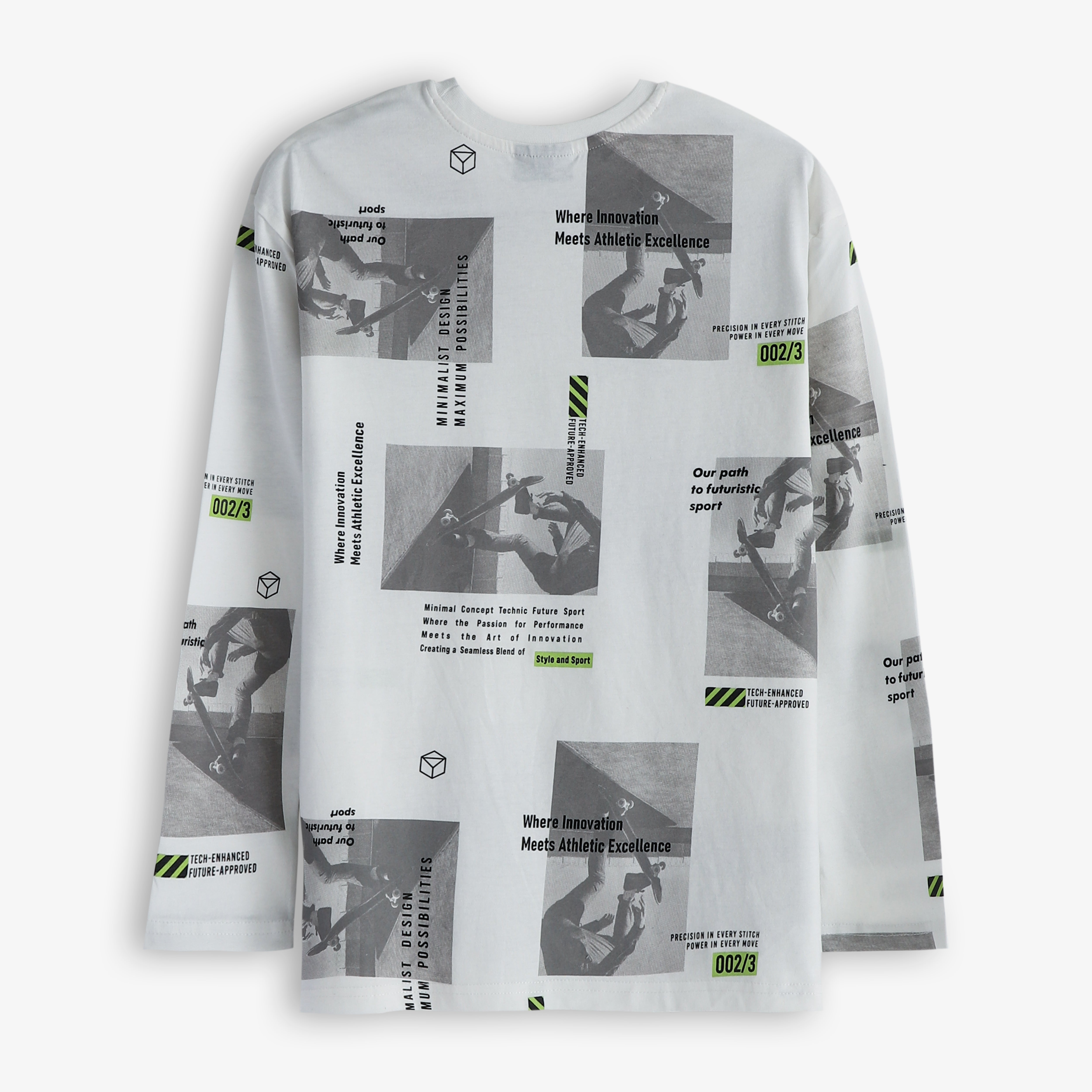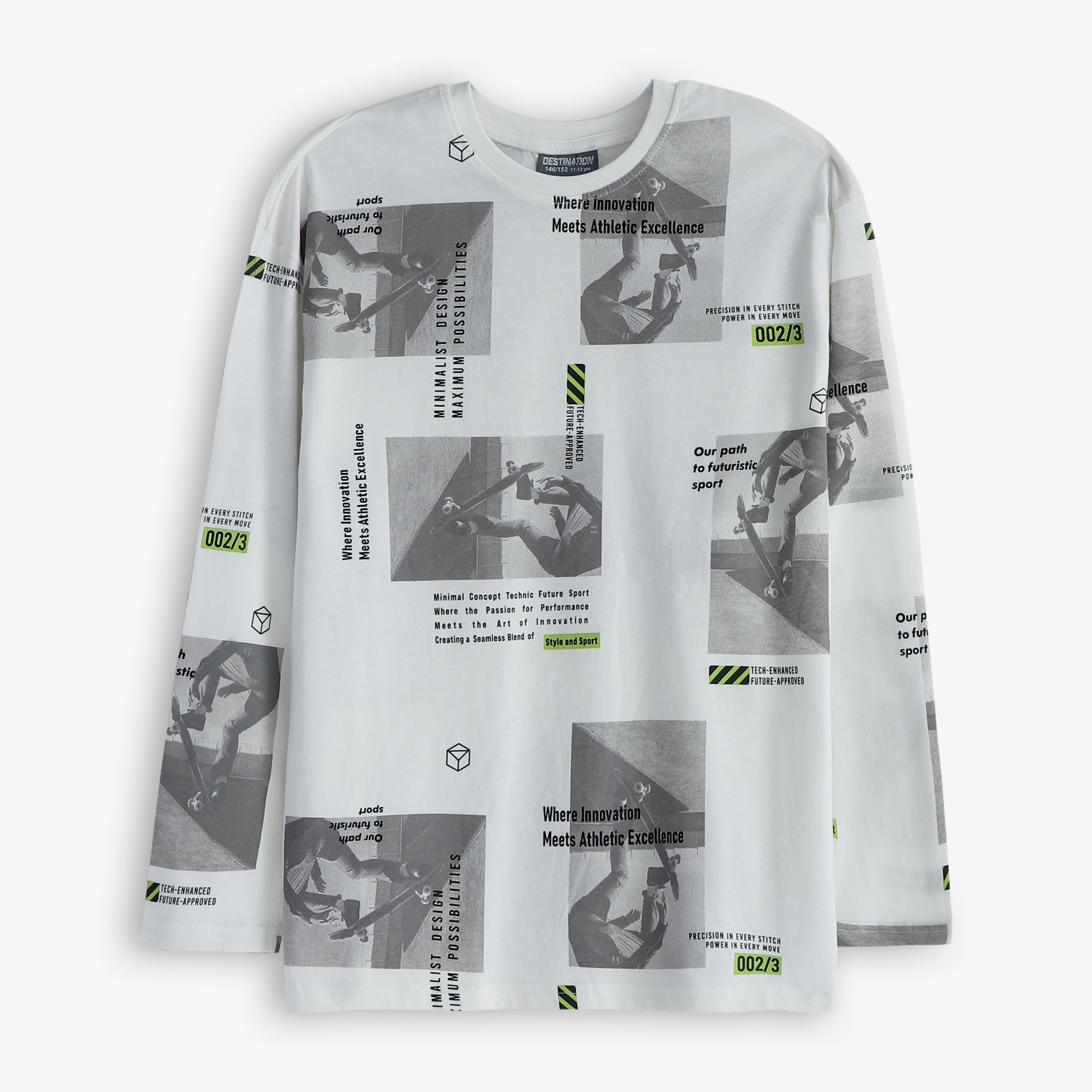 Pepco Boy's White and Green Full Sleeves T-Shirt